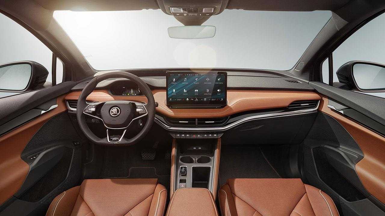 Шкода утверждает, что в этом аспекте он почти так же хорош, как семиместный Kodiaq. Skoda будет предлагать 10 вариантов интерьера на выбор, помимо различных других аксессуаров. Внутри салона Skoda использовала много экологически чистого материала. Обивка выполнена из 40% шерсти и 60% полиэстера из переработанных ПЭТ-бутылок.