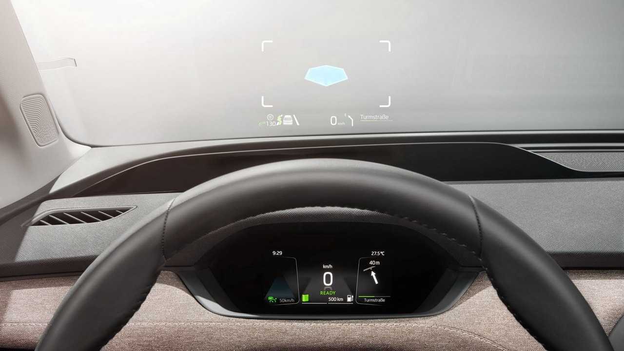 Enyaq также является первым автомобилем Skoda, имеющим дисплей с функцией дополненной реальности, который проецирует информацию на две различные области.
