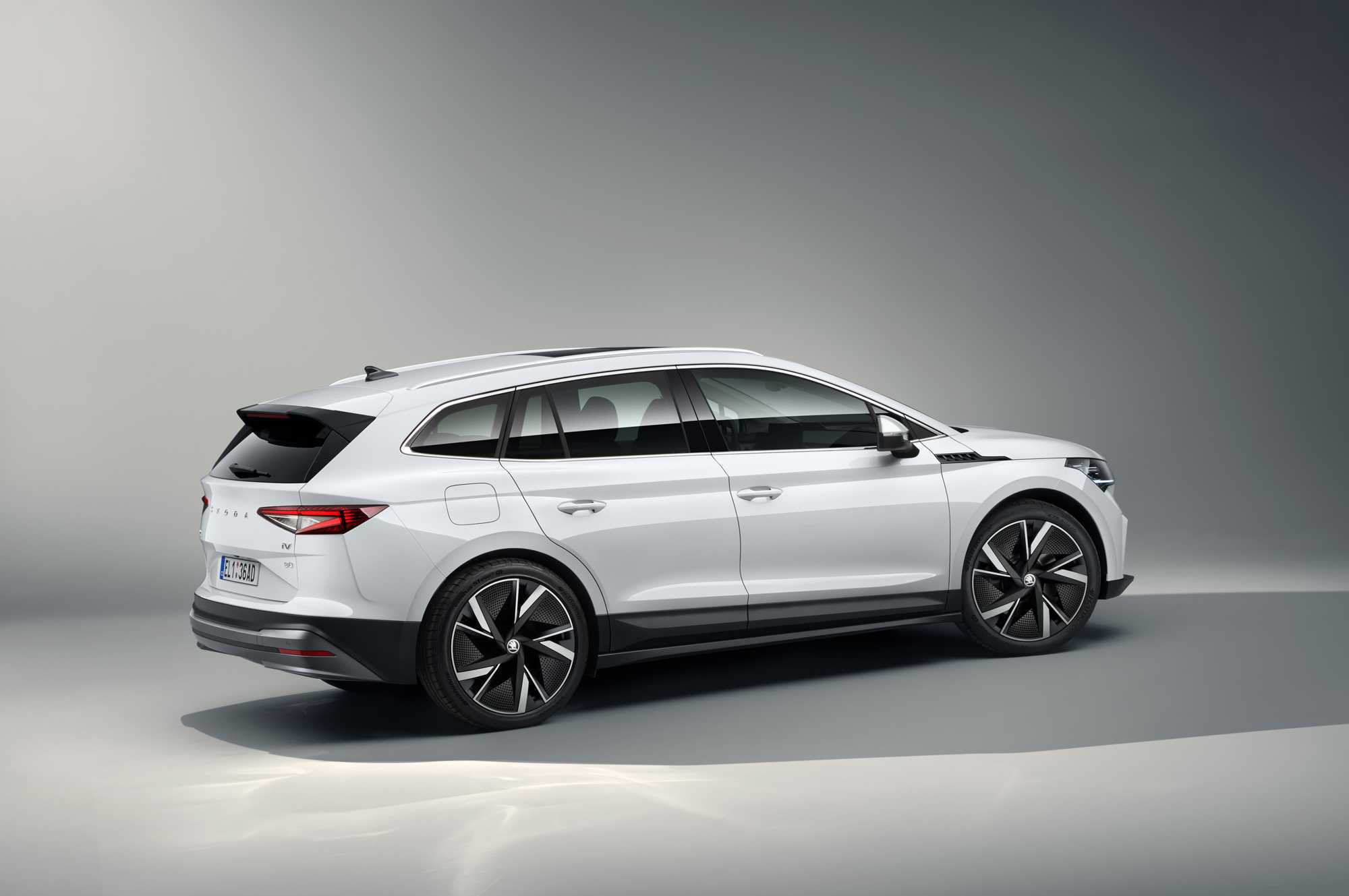 Серийная Skoda ENYAQ iV сильно отличается от одноимённого концепта. Она получила традиционный для кроссовера кузов, а не купеобразный. Светодиодная оптика будет доступна во всех комплектациях. А за доплату клиенту установят опциональные матричные фары. Они управляются, исходя из показаний фронтальной камеры. Электрокроссовер также имеет фальшь-радиаторную решётку. За дополнительную плату производитель установит на неё подсветку. Максимальный диаметр колёс доступен вплоть до 21 дюйма. Однако, в базовой версии будут стоять 18-дюймовые штамповки.
