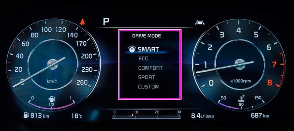Все K5 получают селектор-«шайбу» выбора режимов движения на центральной консоли, доступны три варианта – «Эко», «Стандарт» и «Спорт».