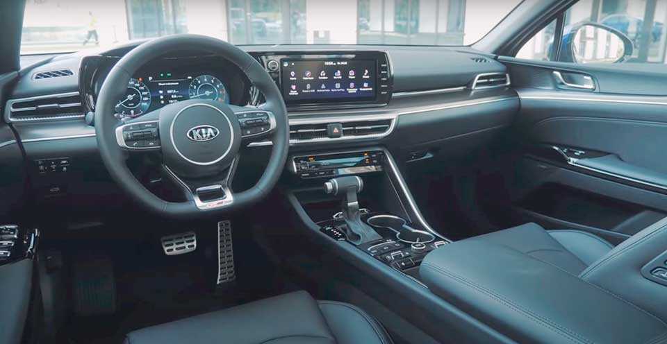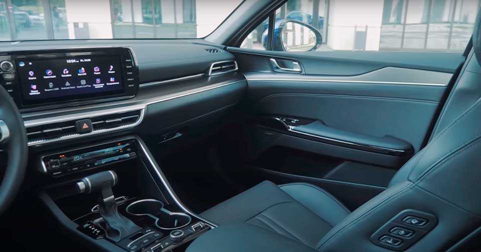 Киа К5 характеризуется просторным и хорошо оформленным салоном, удобным как для передних, так и для задних пассажиров.
