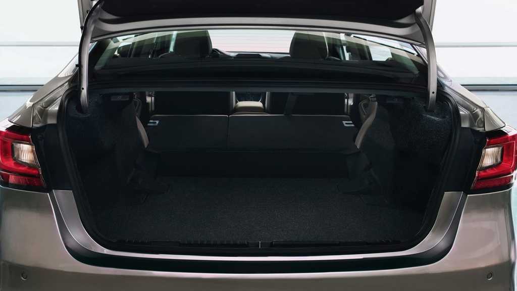 Размеры багажника у модели вполне стандартные – 506 литров. Хотя это на 30 л больше по сравнению с предыдущим поколением Легаси, но не отличается от показателей дорестайлинговой версии. При покупке новый автомобиль комплектуется расположенной в багажном отделении докаткой.