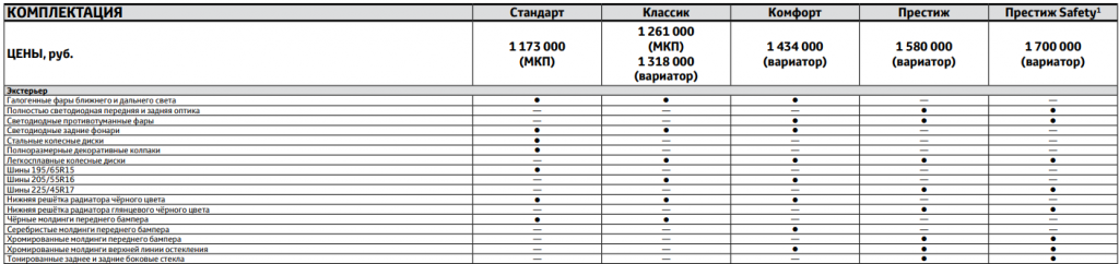 Радует много вариантность комплектации новой модели, позволяющая выбрать авто на любой вкус и по средствам: