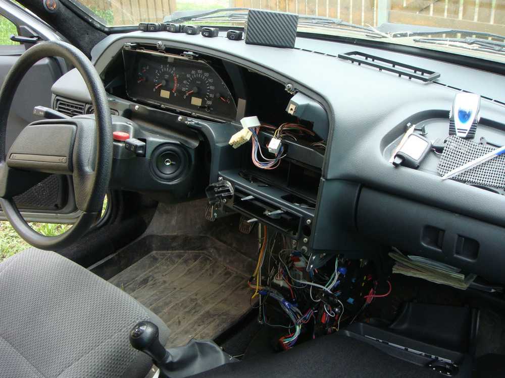 - Демонтаж передней панели. Опытные автолюбители знают, как сложно это сделать, не повредив при этом корпуса. ВАЗ устанавливает на свою продукцию ужасно хрупкие крепления, ввиду чего их можно легко сломать. Вряд ли кому-то понравятся переключатели, торчащие среди проводов из-за отсутствия приборной панели. Поэтому будьте очень осторожными.