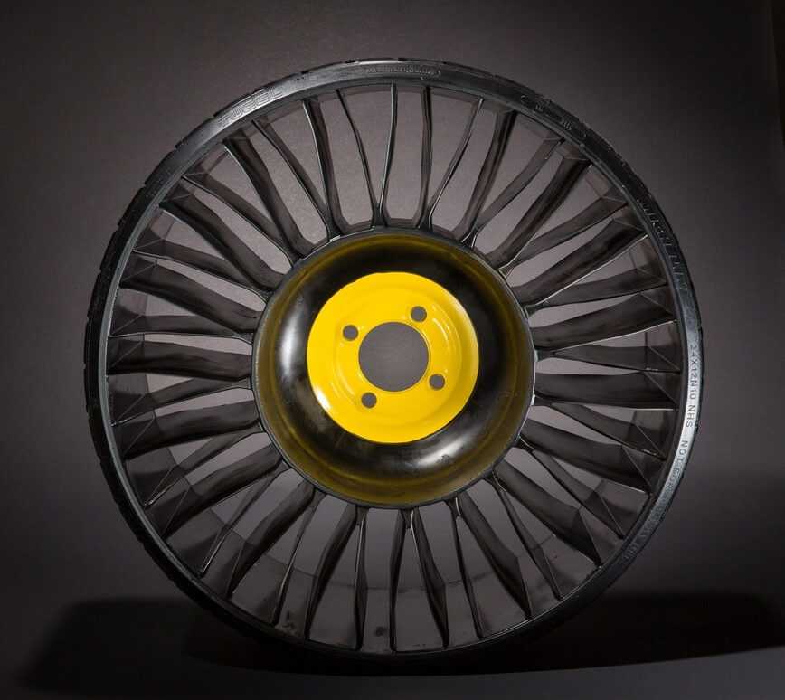 Французская компания MICHELIN разработала покрышки без воздуха Tweel. В конструкции используются плоские «спицы» из резины, которые имеют специальное сечение, они соединяют внешний обод с протектором и внутренний обод, крепящийся к ступице колеса.