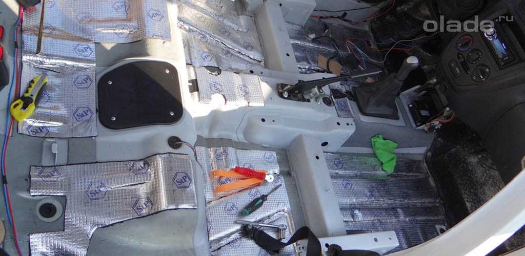 Выполнении качественной шумоизоляции. Для этого разбирается салон до металлического корпуса, обрабатывается битумным покрытием и проклеивается специальным звукоизоляционным материалом. Это позволяет уберечь кузов от коррозии и повысить защиту салона от внешнего шума.