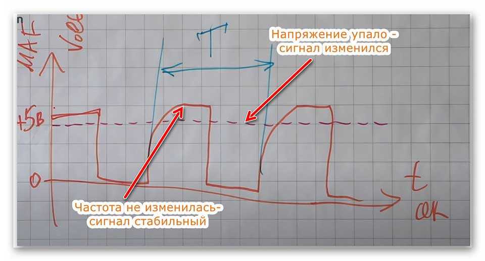 Если ДМРВ уже мертвый, Check Engine может и не гореть. Тогда неисправность можно определить по ошибке, выдаваемой бортовым компьютером. Поможет и диагностика уровня сигнала ДМРВ. Низкий уровень может свидетельствовать о следующем:
