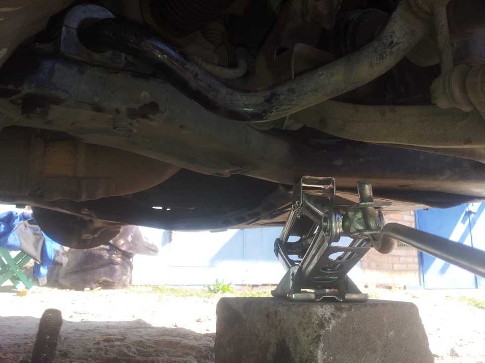 Прежде чем начинать ремонт стойки амортизатора своими руками, первым делом необходимо установить автомобиль на страховочные козлы. В случае, когда есть яма, конечно, будет удобнее воспользоваться ею. В данном случае приведен ремонт стоек амортизаторов при отсутствии специальной ямы.