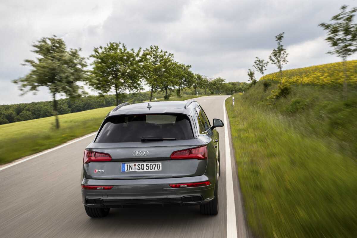 Ходовая часть Audi SQ5 2021 года представлена двумя полностью независимыми многорычажными подвесками. Причем, наличие пневмоподвески позволяет настраивать уровень клиренса в зависимости от условий езды кросса. А во время движения по трассе на высокой скорости расстояние до дорожного полотна подвеска сводит к минимуму самостоятельно. Тормозная система состоит из дисковых механизмов спереди и сзади, а также электронного стояночного тормоза. Кроме того, кросс обладает встроенной системой рекуперации энергии, получаемой в результате торможения.
