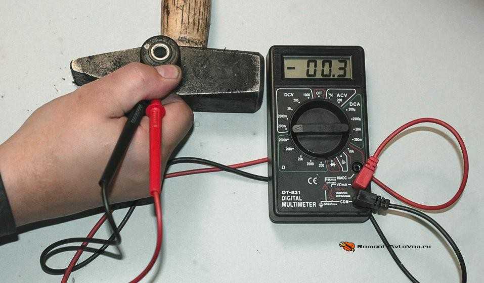 Для проверки всего лишь следует отсоединить колодку с проводкой от ДД и к контактам датчика подключить тестер. Затем следует наносить легкие удары ключом по болту крепления ДД и следить за показаниями на дисплее тестера.