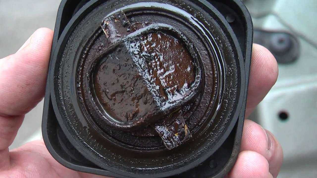 Дополнительная диагностика заключается в проверке системы вентиляции картера, в которой скапливается конденсат. При поломке системы внутри мотора создается избыточное давление, что приводит к оседанию эмульсии с запахом топлива на крышке для заливки масла.