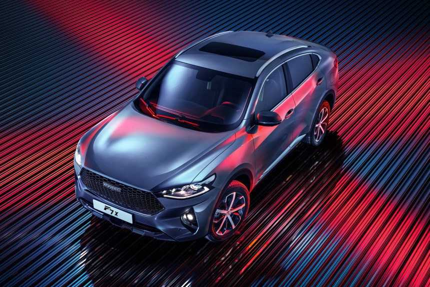 На фото передней проекции Haval F7x 2019 уверенно и несколько вызывающе демонстрирует характерные элементы спортивного стиля, в том числе: