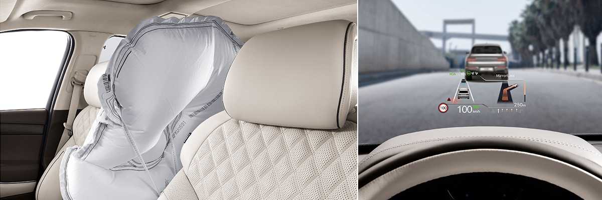 - 7 подушек безопасности – для коленей водителя, фронтальные, боковые и шторки (в корейском варианте насчитывается 10 аэрбегов);