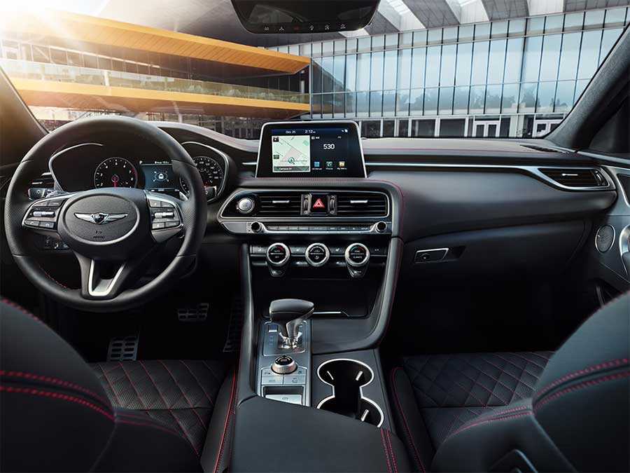 В интерьере G70 следует отметить появление нового 10,25-дюймового дисплея мультимедийной системы, при этом обновился сам пользовательский интерфейс. Максимальный размер экрана бортового компьютера вырос с 3,5 до 8 дюймов, а дополнительная тишина в салоне теперь обеспечивается за счет добавления акустической пленки на передних стеклах.