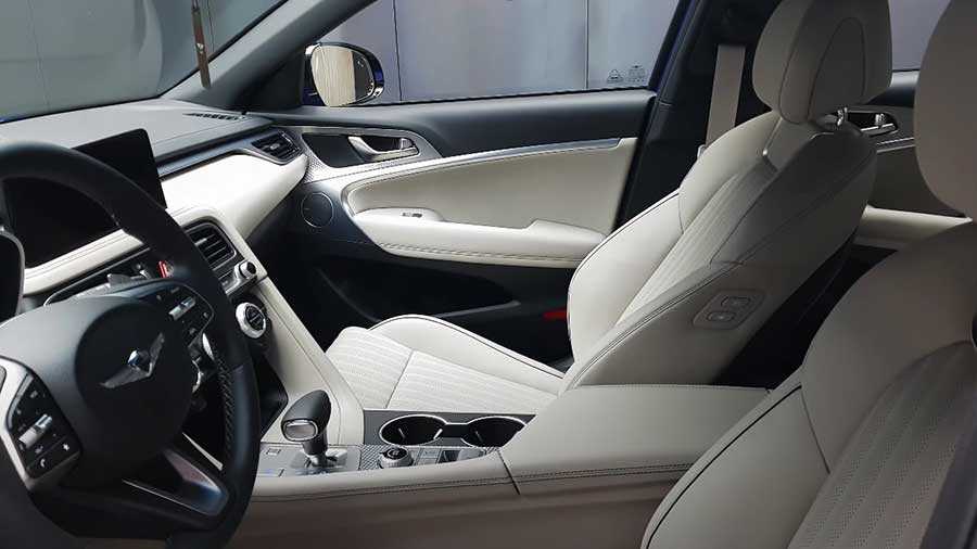 Интерьер Genesis G70 характеризуется высоким качеством отделочных материалов, продуманностью всех его деталей до мелочей, хорошей эргономикой.