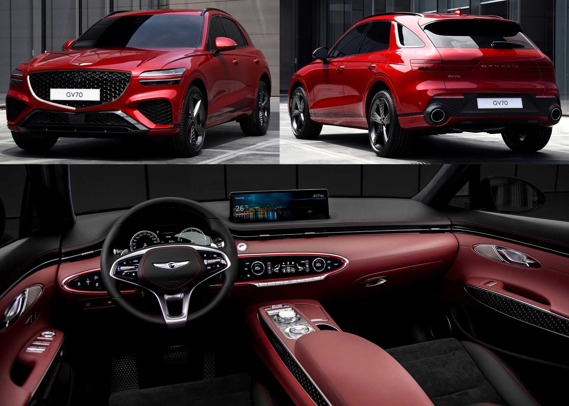 В новой редакции кроссовер Генезис GV70 образца 2021 года существенно отличается от заявленного ранее концепта. В частности, увеличен формат и конфигурация головной оптики, вместо камер обзора слепых зон установлены классические зеркала.