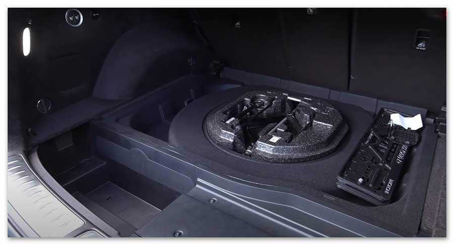 Багажник объемом 488 литров, а со сложенным задним рядом вмещает уже 1200 литров. Под полом багажника спрятана полноразмерная “запаска”. Есть подсветка и розетка.