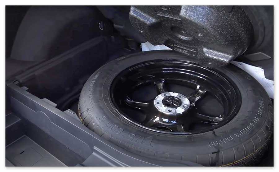 Ближе к задней части располагается аккумулятор (с правой стороны) и органайзер, где можно хранить различные мелочи или, допустим, небольшую канистру с технической жидкостью, глубже укладывается запасное колесо с инструментами.