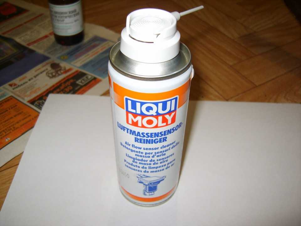 - Liqui Moly. Чтобы почистить регулятор, можно использовать жидкость Liqui Moly. Компания Liqui Moly известна всем продуктами для автомобилей. Продукты производителя Liqui Moly характеризуются высоким качеством, а также немалой ценой. Жидкость очиститель ДМРВ Liqui Moly на практике является эффективным средством. Как показывает практика и отзывы автолюбителей, Liqui Moly позволяет эффективно избавиться от загрязнений и если датчик воздуха находится в рабочем состоянии, после очистки он может проработать долго. Этот продукт подходит как для бензиновых, так и дизельных агрегатов. Стоимость Liqui Moly на сегодня составляет около 12 у. е.