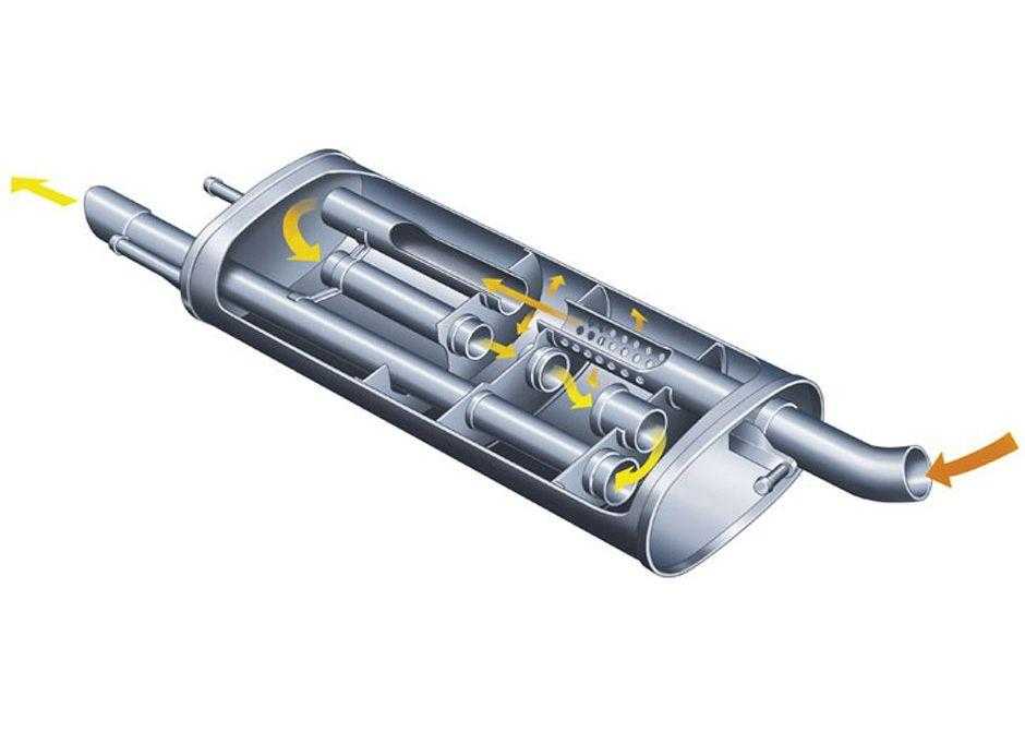 В выхлопной трубе особые элементы — глушители и резонаторы, посодействуют уменьшить скорость движения газа. Резонатор в очереди находится первым. Под давлением газы попадают в увеличенную часть трубы, там они теряют часть собственной энергии и далее двигаются с наименьшим импульсом. Выхлопные газы в системе лабиринтов глушителя вполне теряют энергию и рассеиваются. На импортной машине тихий глушитель имеет некие отдельные корпуса.