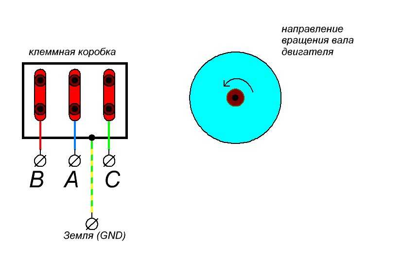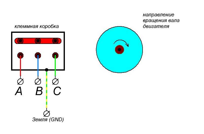 Итак, у нас обмотки двигателя соединены по схеме “звезда”. Куда же нам подать напряжение, чтобы двигатель начал свое вращение?