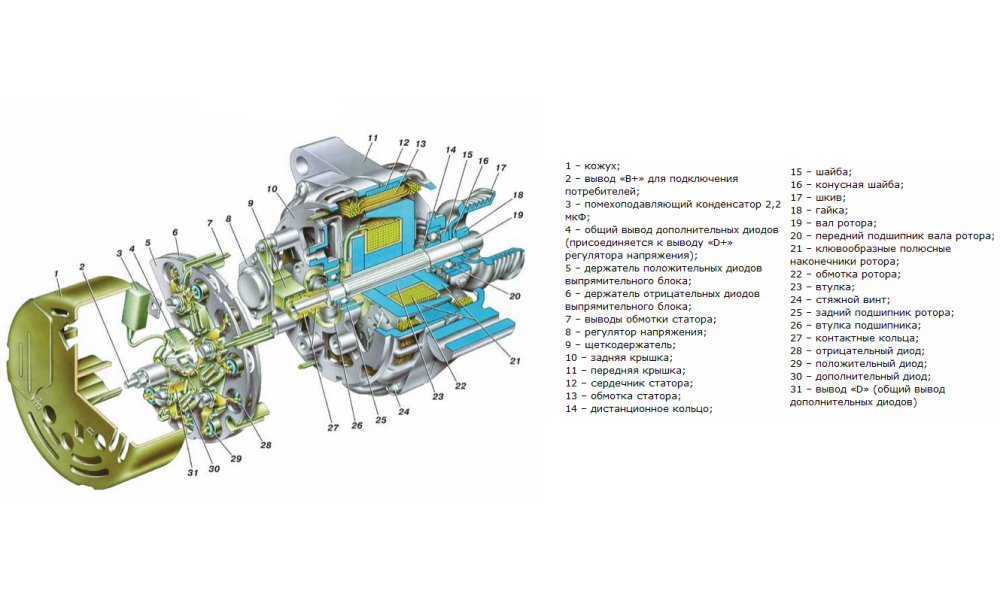 Проверка начинается с осмотра ремня привода генератора и его натяжения, а также анализа работоспособности других элементов (проводка, клеммы, соединения, ролики и шкивы ремня генератора и т.д.). Если замечаний нет, тогда следует оценить, как работает сам генератор, нет ли посторонних шумов при вращении ротора.