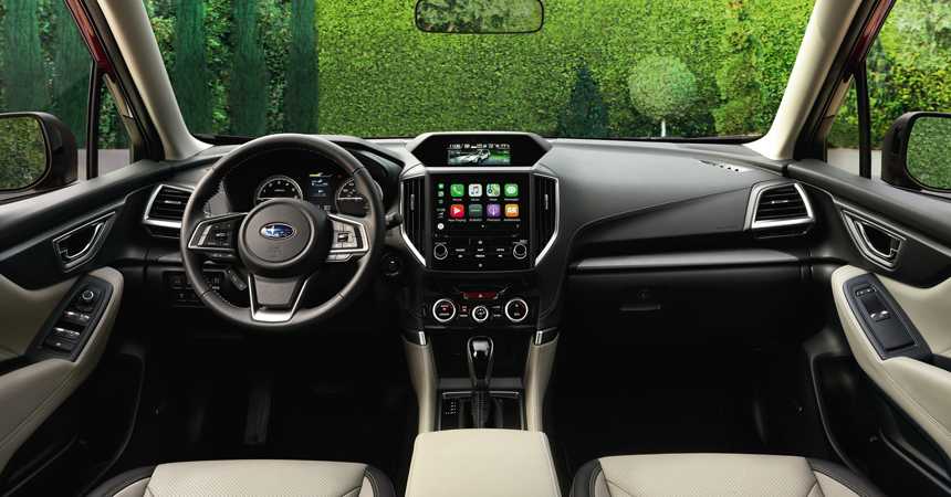 Интерьер Subaru Forester 2021 года продолжает нести на себе черты дизайна салона предыдущих версий кроссовера и не выделяется чем-то новым. Конечно, следуя японским «традициям», под передней панелью все обновляется, от чего бортовые системы начинают работать быстрее и стабильнее, дисплеи – дают более четкую картинку, а отделочные материалы становятся чуть мягче и добротнее.