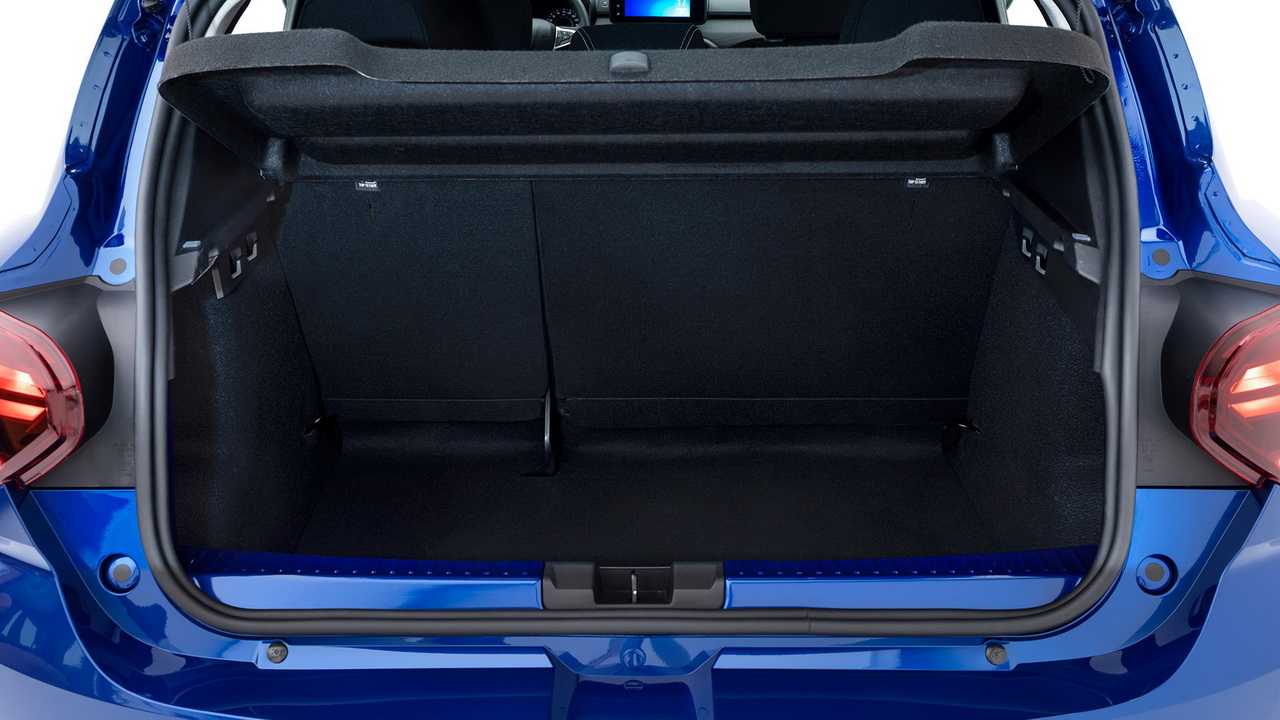 Сзади новая модель выглядит очень современно. Начинается она с небольшого козырька, прикрывающего столь же миниатюрное округлое стекло. Ниже идет небольшая крышка багажного отсека с шильдиком Рено и горизонтальной выштамповкой, визуально делающей ее более объемной. По ее краям будут красоваться небольшие светодиодные габаритные огни. Задний бампер по традиции останется очень крупным и получит Т-образное углубление в центральной части, в которое и будет закрепляться номерной знак. Также обвес содержит рельеф, едва заметные противотуманки и скромную защиту, выполненную из черной пластмассы, в самом низу.