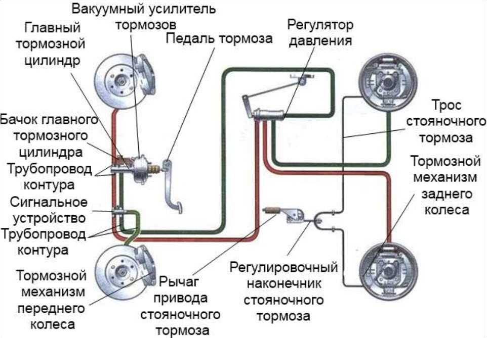 Система торможения состоит из механизмов и приводов. Основными узлами гидравлического привода являются: