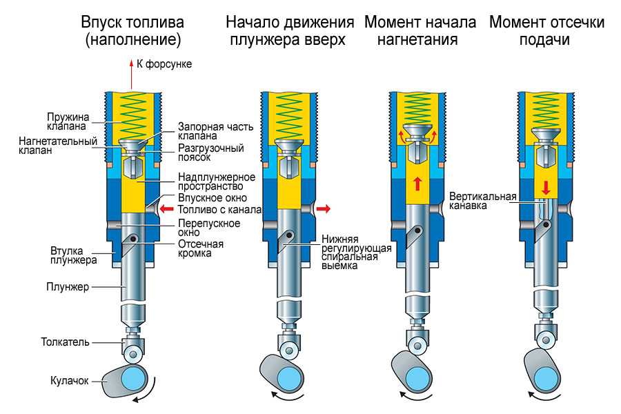 В общем, работа самой плунжерной пары очень проста, но существует множество нюансов и особенностей, в том числе и конструктивных, которые влияют на функционирование этого узла. Поэтому принцип работы ТНВД следует рассматривать отдельно по каждому из указанных видов.