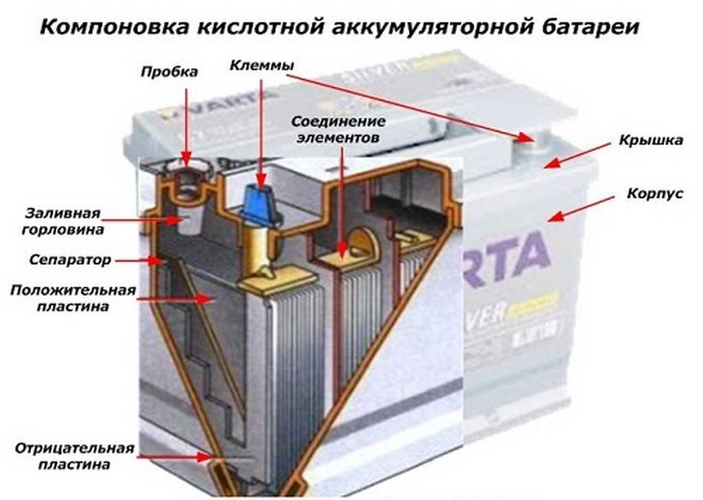 Компоновка кислотной аккумуляторной батареи (АКБ)