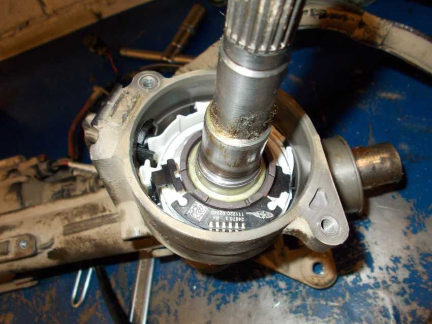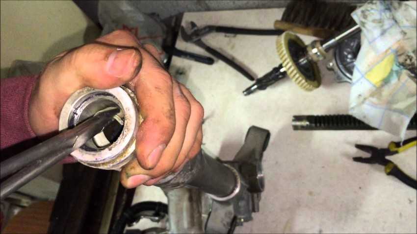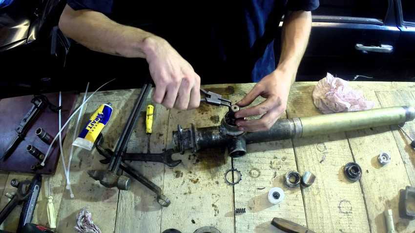 Внимательно проверяйте подшипник, который расположен сверху. Он разрушается в первую очередь, так как на него идет основная нагрузка от рулевого колеса. Как проверить стучит ли подшипник? Достаточно покачать вал, на котором он находится, допустимый люфт не более полтора миллиметра.