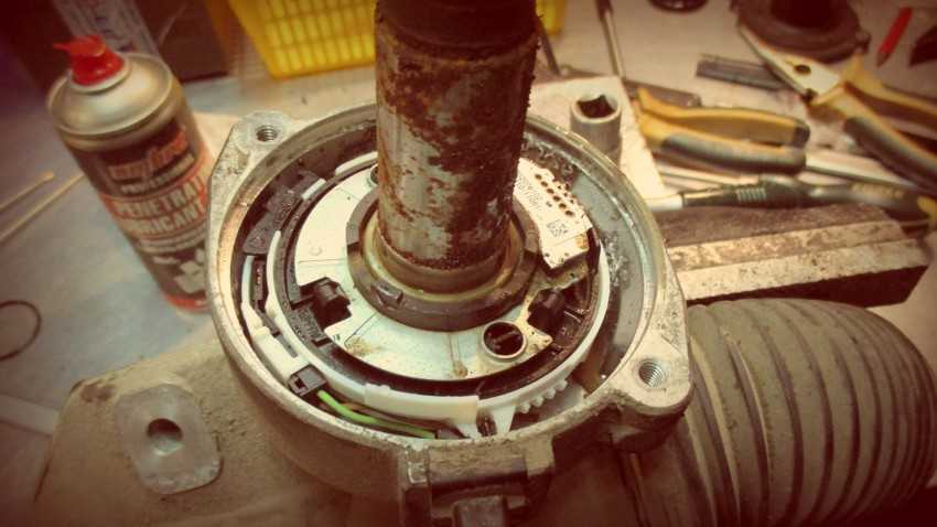 Если же во время вращения руля вы слышите скрежет, то это признак коррозии рулевого вала или подшипника в распределителе. Подшипник в этом случае необходимо заменить, рулевой вал можно отшлифовать, если ржавчины немного. Если коррозия сильно повредила распределитель, его придется заменить.