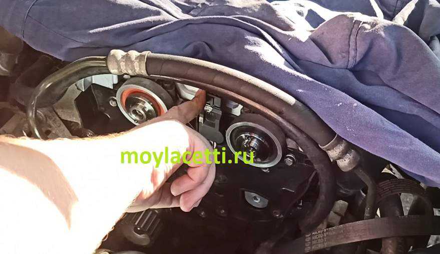 Лучше не прибегать к работе маркером, а прокручивая болт шкифа коленвала по часовой стрелке, выставить шкифы в положение заводских отметок. Они также нанесены и на двигатель. Случается, когда отметки имеются только на шкифах.