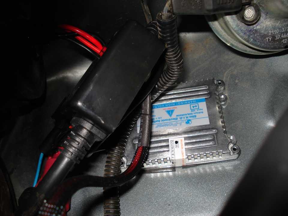Этап установки лампочек был наиболее сложным и трудоемким. Далее необходимо выбрать место для установки блока розжига. Оно должно находится в непосредственной близости к фарам, чтобы провода проходили не в натяжку.