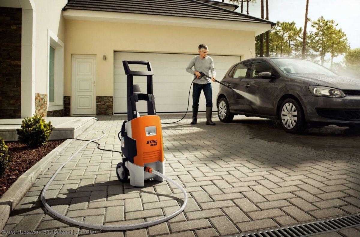 Отличная минимойка в соотношении цена – качество. Обеспечивает сильный напор воды до 5 метров. Есть боковой карман для шланга и щётки. Использовать устройство можно круглый год. Продолжительный срок эксплуатации – 5–6 лет.