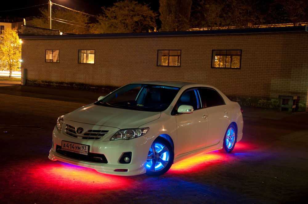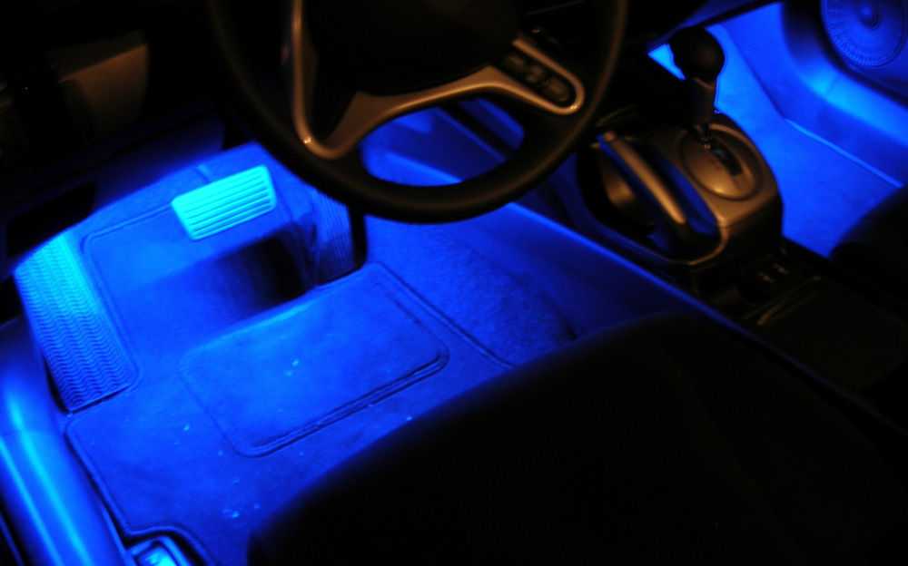 Такой вариант обустройства машины все чаще встречается – установкой ксенона на фары мало кого можно удивить, а таким образом, используя различный свет автомобилист получает возможность сделать его отличным от других ТС. Установка устройств для подсветки днища Установка подсветки на днище авто осуществляется путем крепления к нему светодиодной ленты.