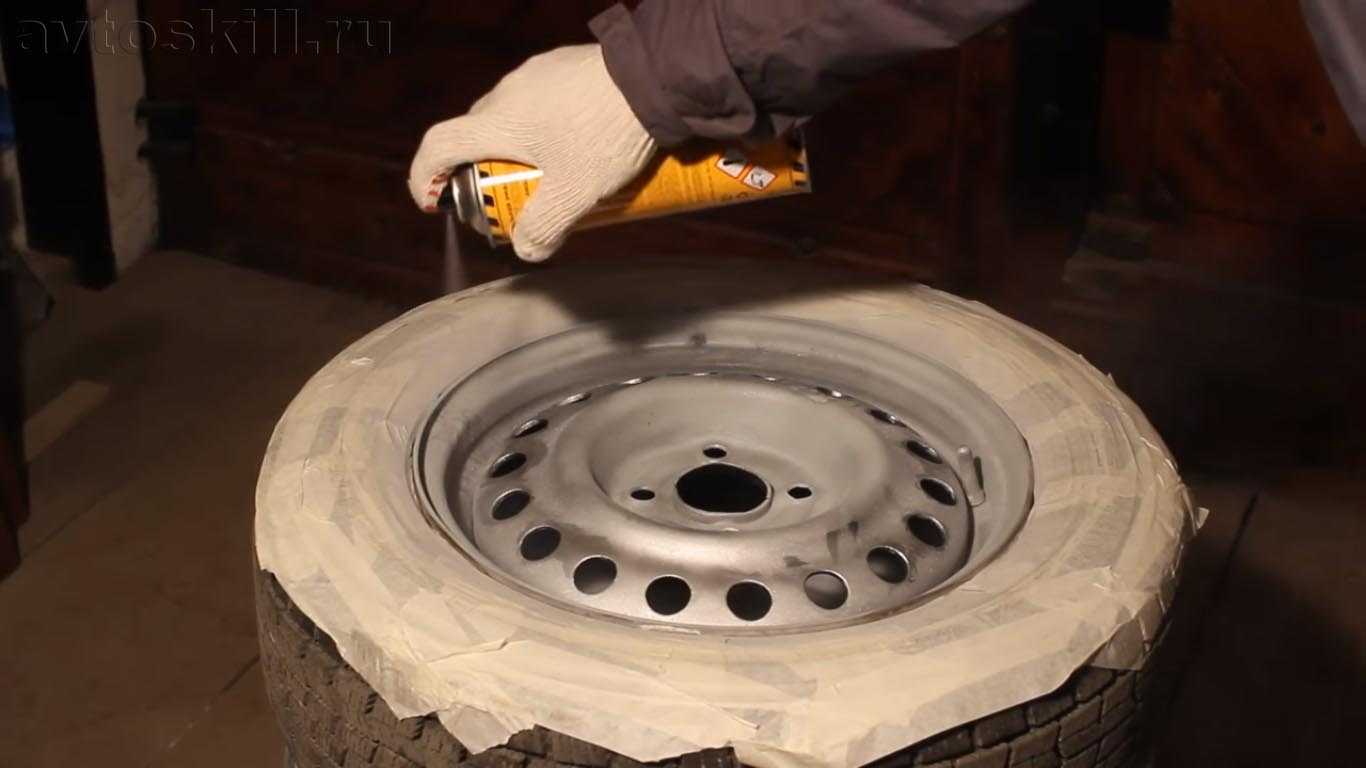 Перед работой снимают покрышки, пластиковые колпаки и заглушки, которые будут мешать качественному окрашиванию. Далее подготовка включает такие этапы: