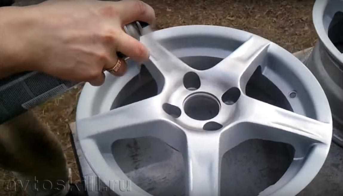 Но если есть стремление выполнить работу качественно, то потребуется как следует попотеть со снятием всей старой краски. Если обод имеет явные дефекты, которые не устранились во время предварительной обработки, то нужно исправить поверхность машинной шпаклевкой. Но перед этим обезжирить автодиск спиртом, бензином либо специальным средством. С помощью шпаклевки выравниваются все вмятины и глубокие царапины.