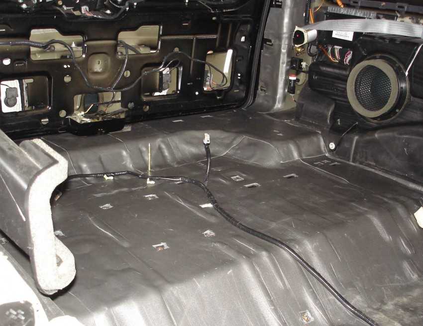 - Проходящие по полу жгуты проводов не перекрывайте антишумовыми материалами. В конце проводка должна оказаться сверху и прятаться под ковролином.